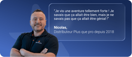 Depuis 2018, Plus que pro leur permet de rejoindre son réseau de distributeurs d’élite et d’enfin révéler les entrepreneurs engagés qu’ils sont ! Partout dans l’Hexagone, ils peuvent ainsi incarner un cercle vertueux : être un bouclier pour les consommateurs, un tremplin pour les entreprises méritantes, un levier pour un marché assaini.